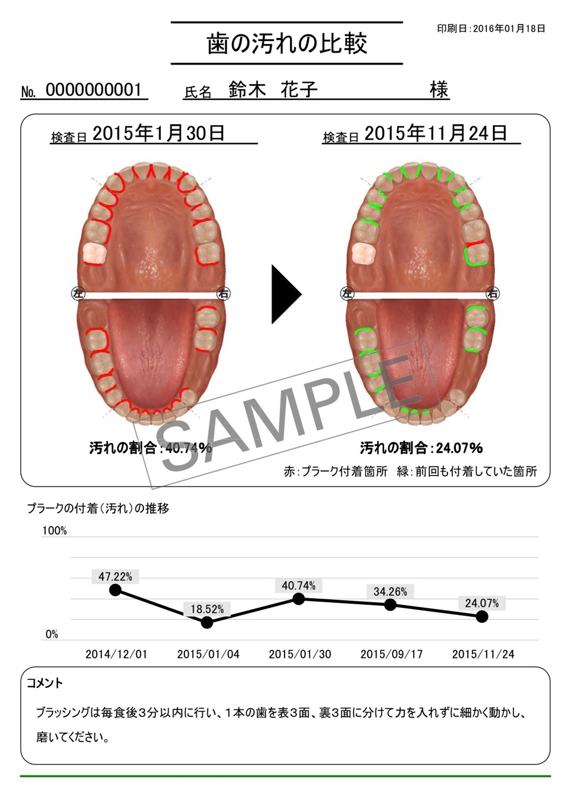 また、患者さんご自身のお口の中が一目で分かるように、現状のお口の中の説明書をお渡しします。